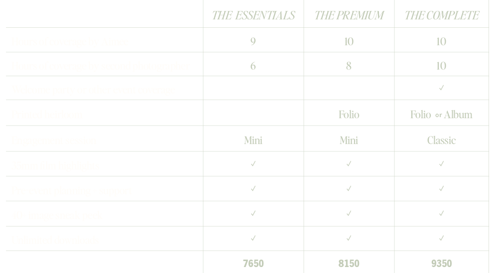 I am holding your wedding date for 14 days from your receipt of this proposal. I am always happy to schedule a time to meet (by phone, video call, or in person) to discuss specifics.