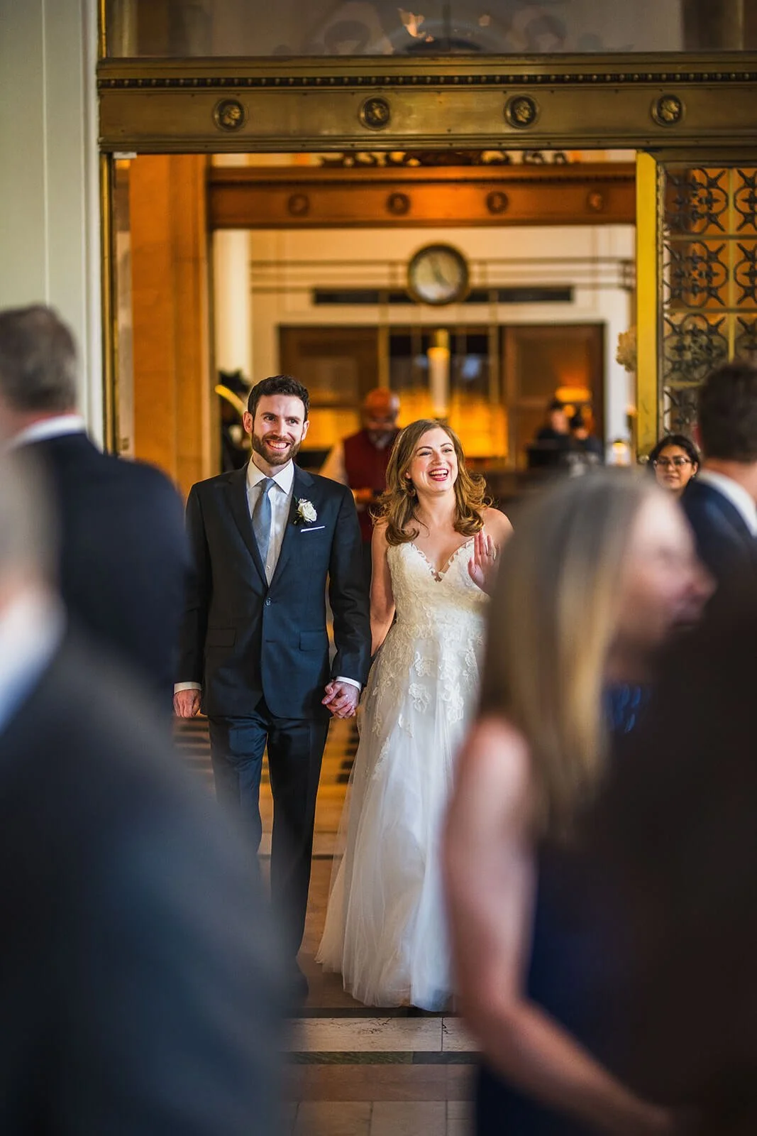 This sweet couple wanted their guests to have a great time—a fun and conversational feeling, not overbearing. They kept details and fuss to a minimum, prioritizing spending time with everyone who came to celebrate with them and be present in the moment. They skipped getting ready photos, opting to start photo coverage with a first look and portraits in and around the hotel before their guests joined for an indoor rooftop ceremony, cocktails at Cafe Riggs, and then dinner and dancing back on the rooftop.